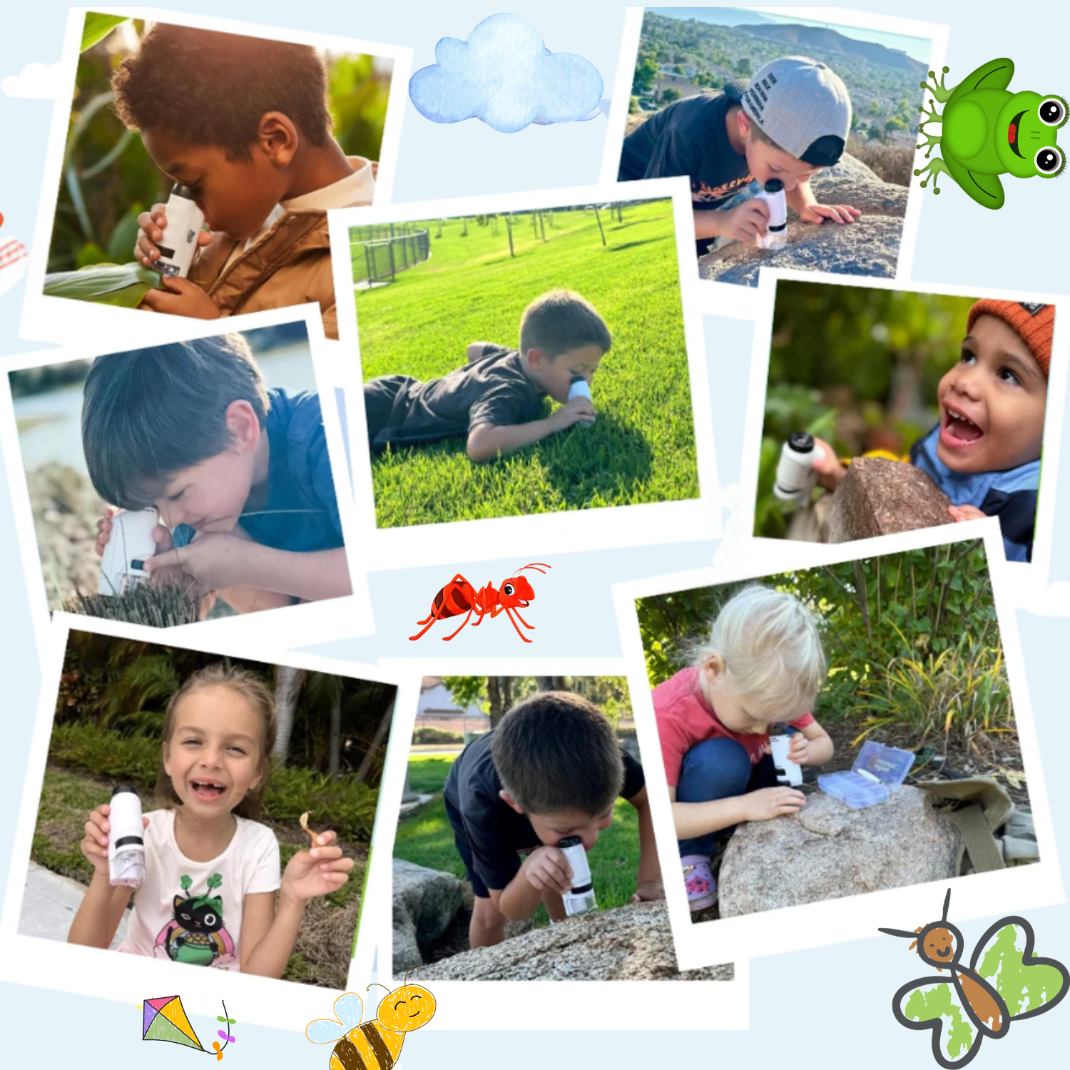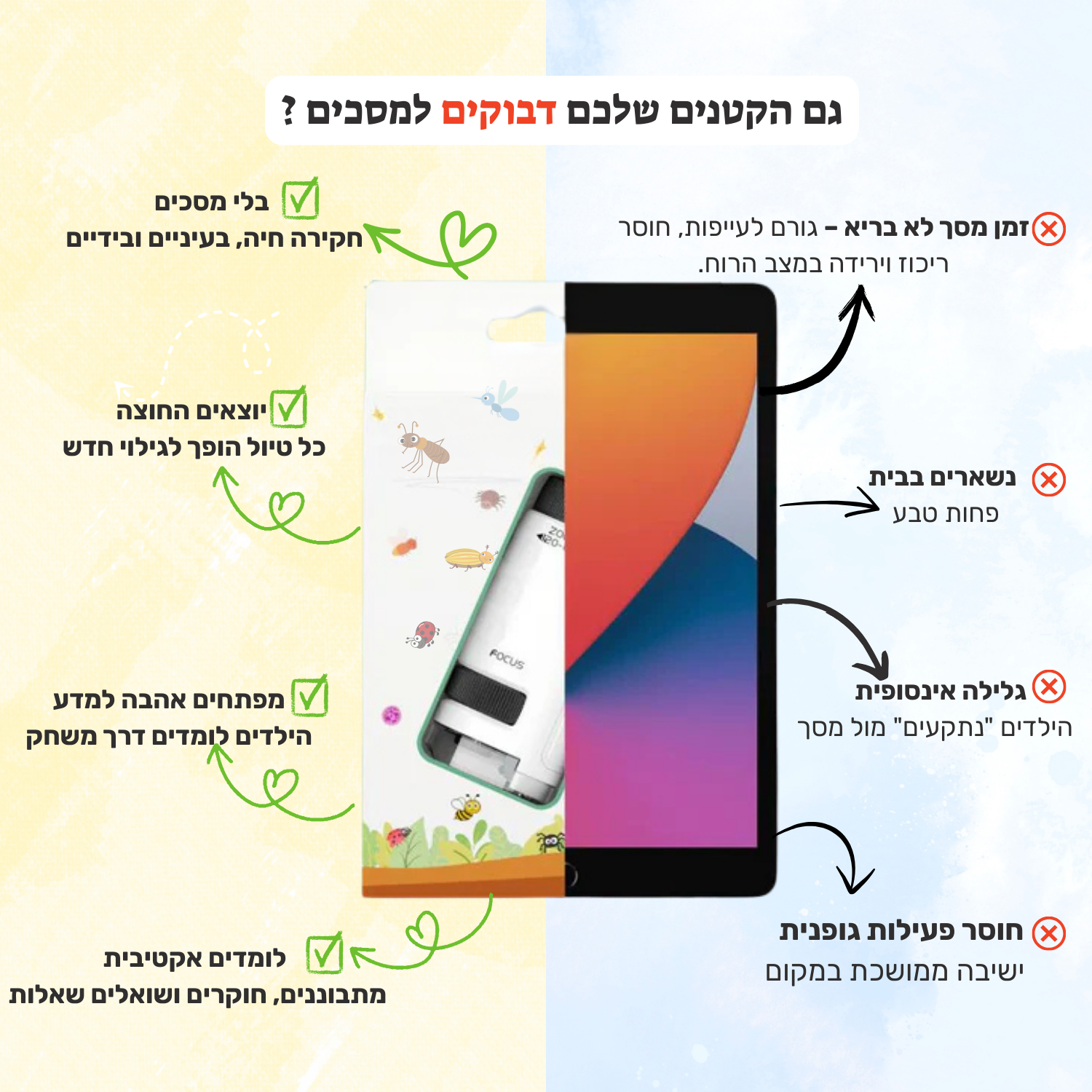מיקרוסקופ כיס חינוכי ומהנה שמושך את הילדים מהמסכים להרפתקה מדעית מרתקת – בבית, בגינה ובשטח.